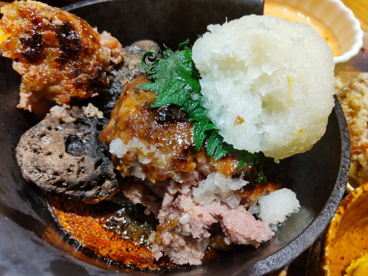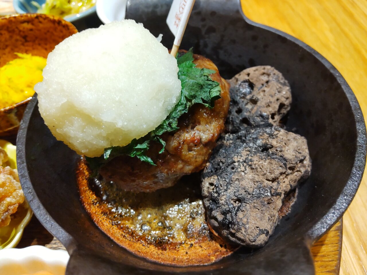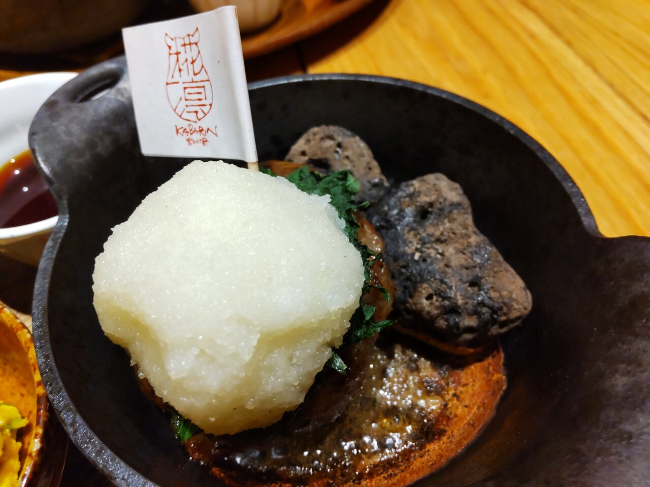 大根おろしと旗🎌、そして奥に有る、焼き石の存在感🤭🍀