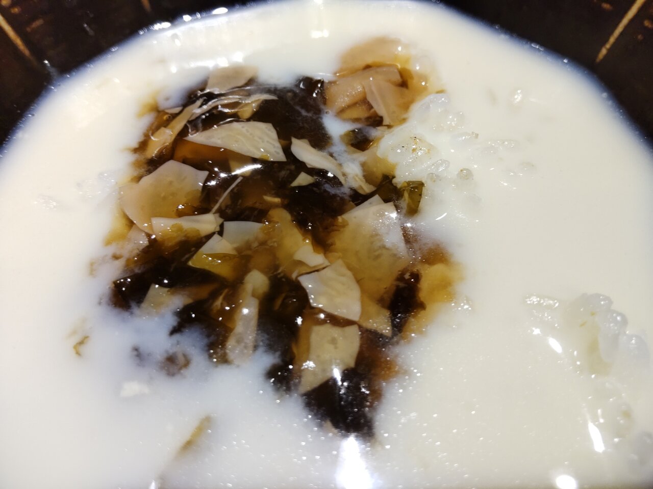 店員さんに声掛けして、豆乳に昆布だしをかけて頂きます🎵