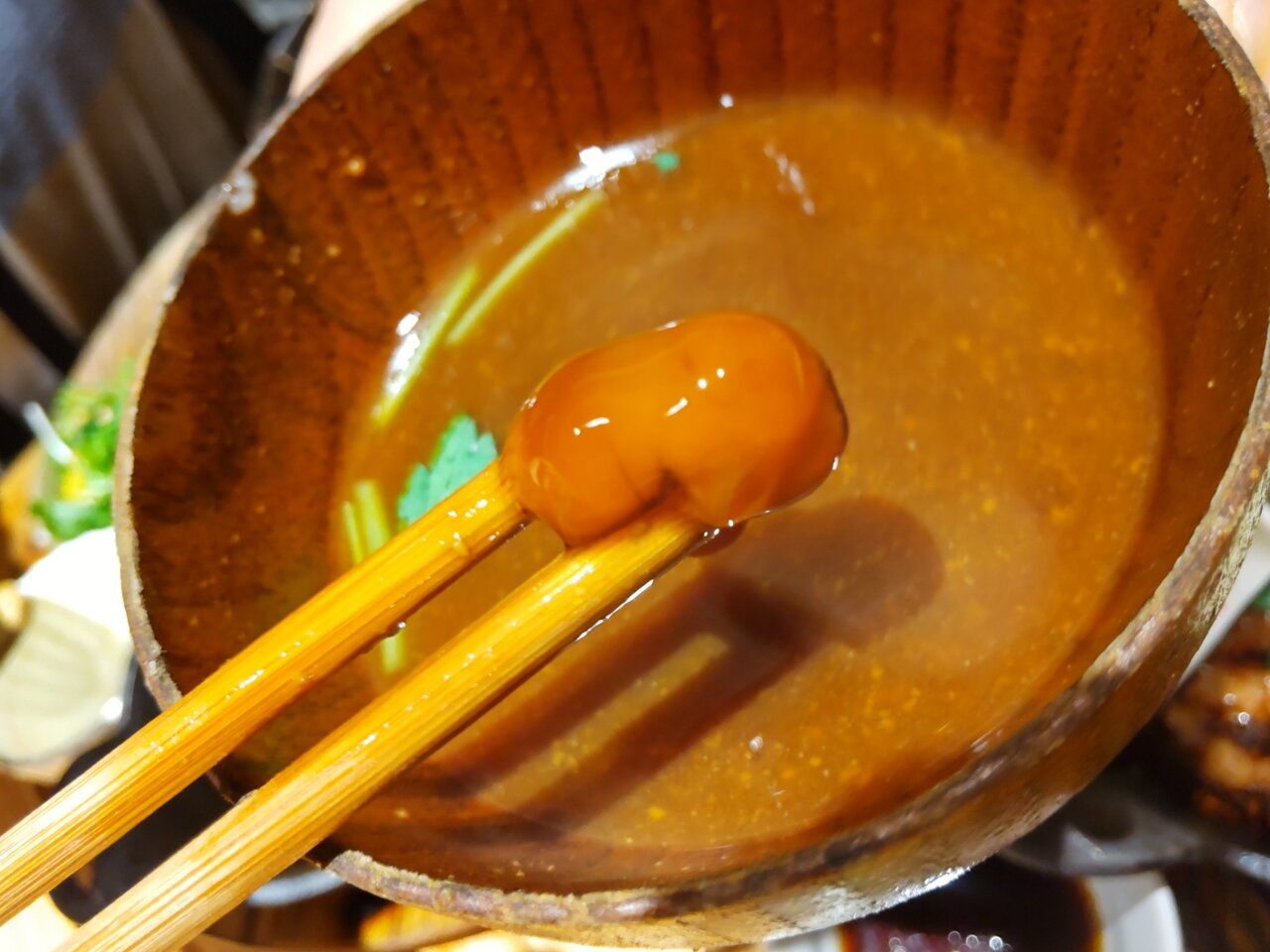 最後に、生姜と湯葉入りのタレをかけてもらいます✨📋️