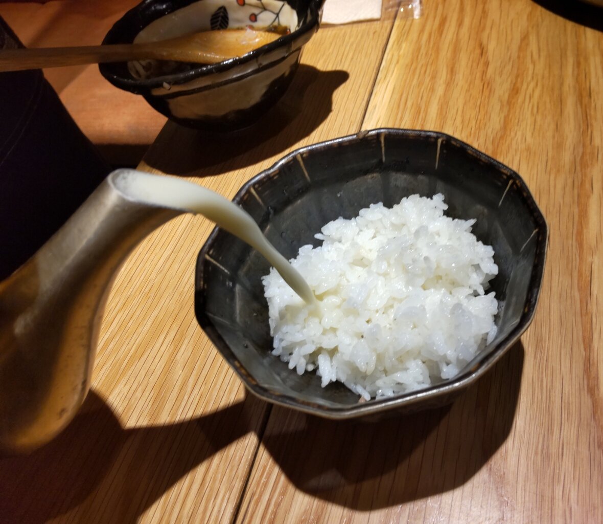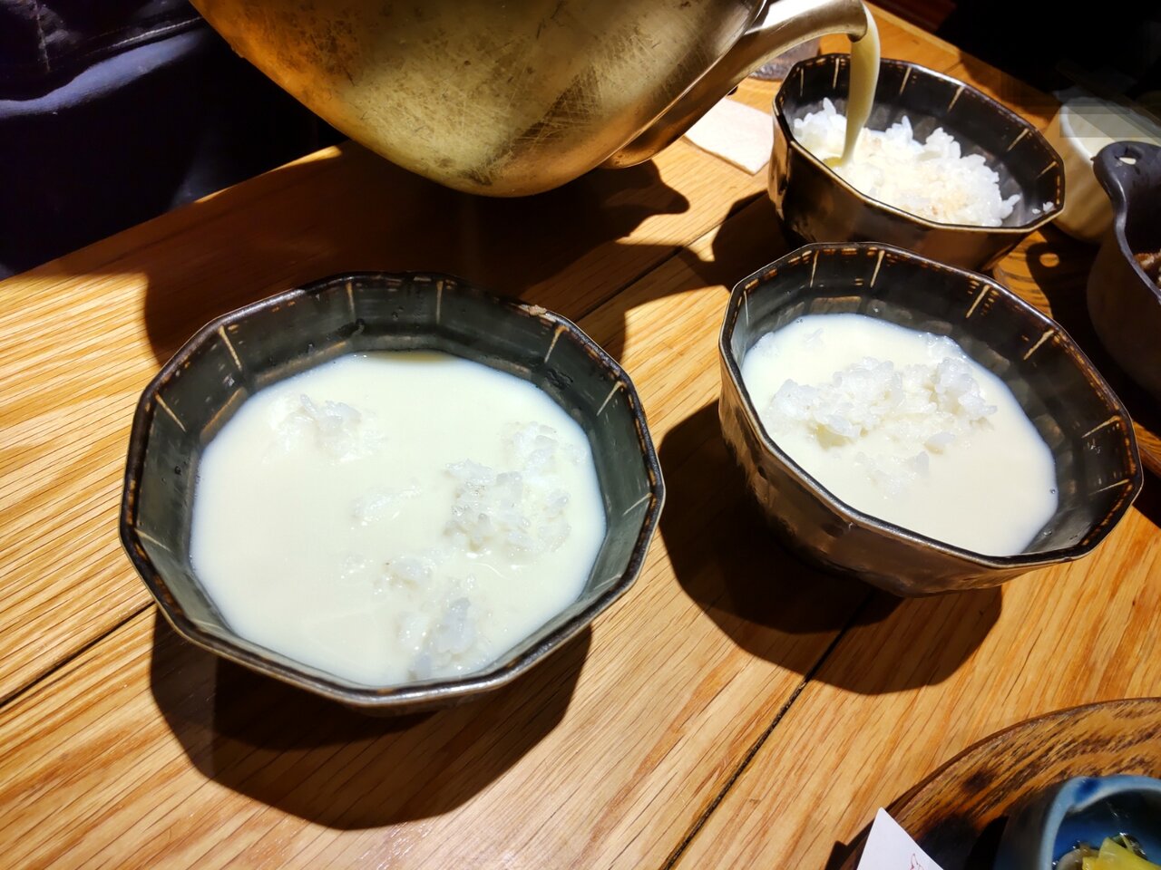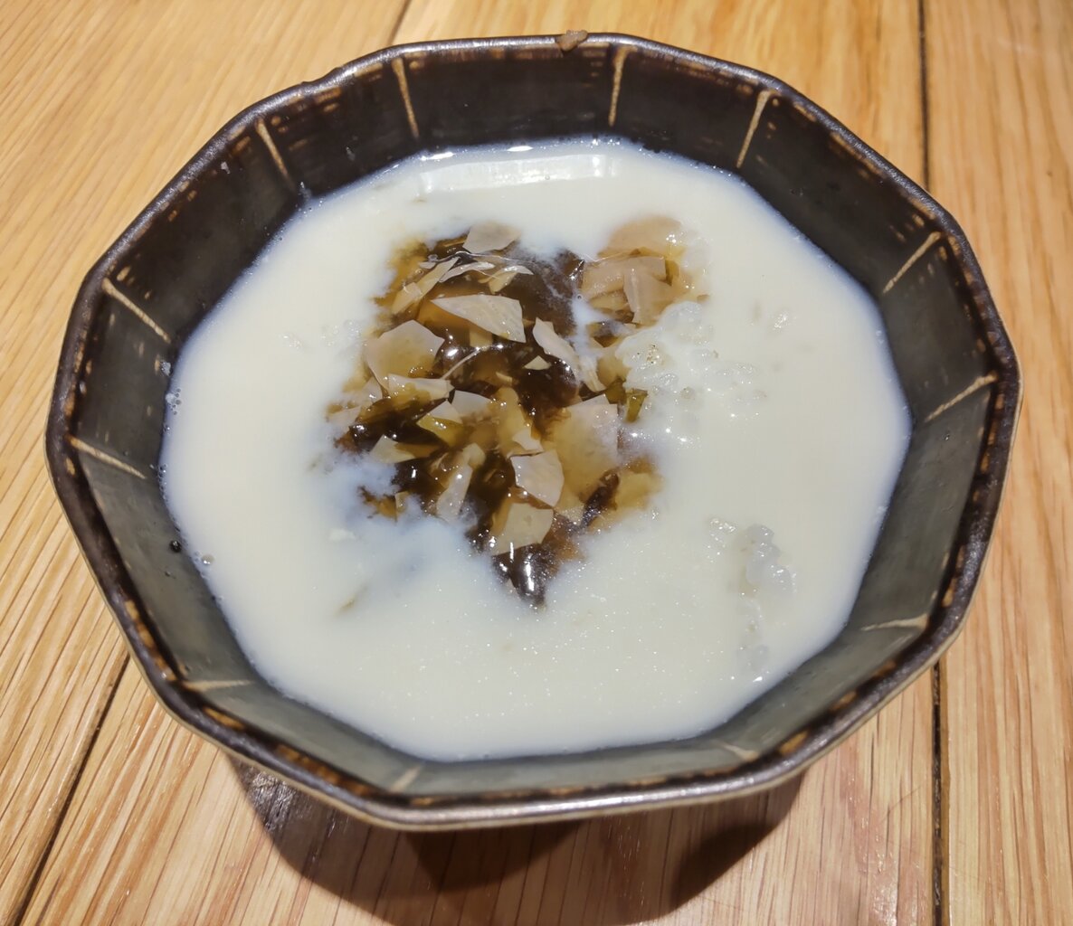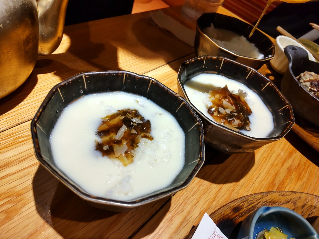 〆で、ご飯🍚に豆乳昆布だし、生姜と湯葉出汁茶漬けに出来ますので、お声がけ下さいとの事📋️🍚🍵😌