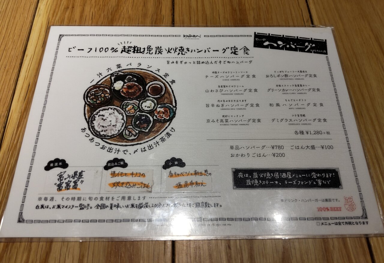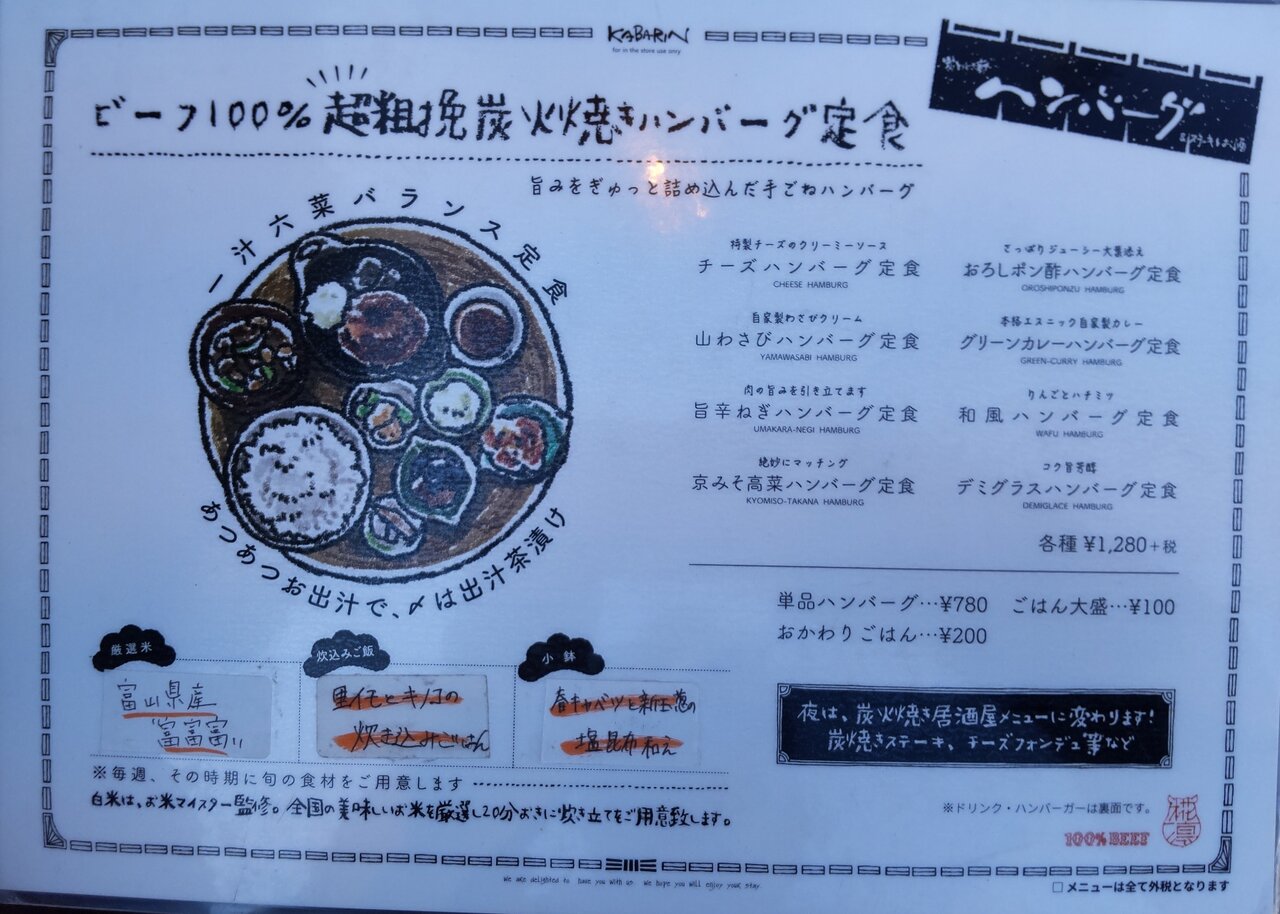 ビーフ100%超粗挽炭火焼きハンバーグ定食📋️