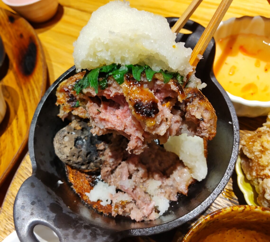 👆️レアのハンバーグを、石焼きするシステム🥩🔥