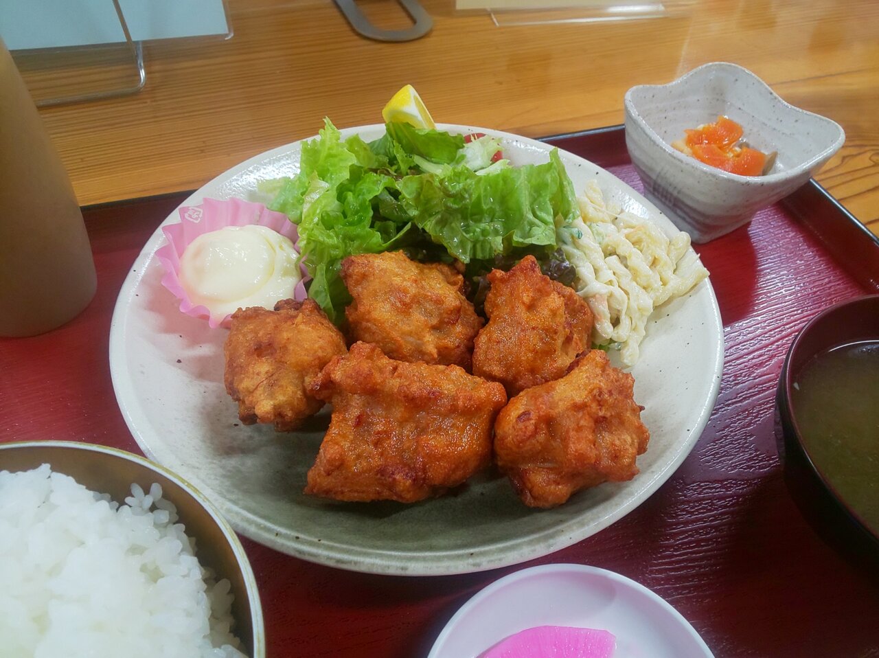 👩これが鶏唐揚げ定食よ👍